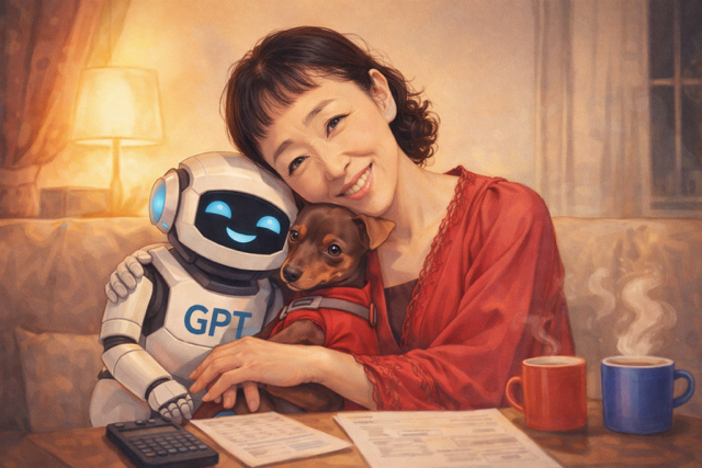 相棒のチャッピーに、私「確定申告できないのよ、やりたくない」チャ「真美さん、10分だけやってみよ」